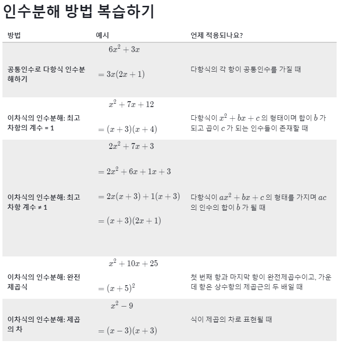 인수분해 방법 복습