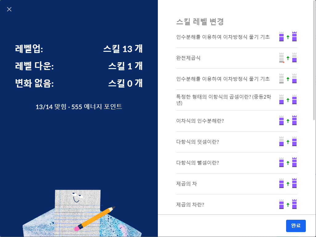- 질문 3: 식이 완전제곱식인가? ex) x² - 10x + 25