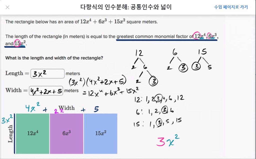 다항식의 인수분해: 공통인수와 넓이